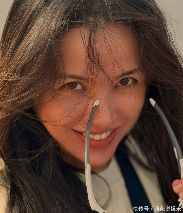 照片里,她素颜出镜,脸上有皱纹,眼神却特别温和,整个人给人一种很放松的感觉。
